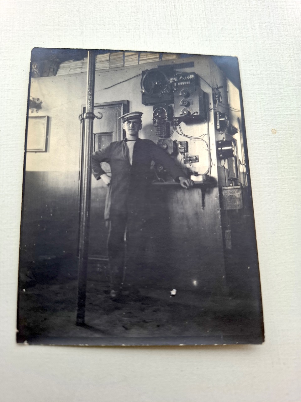 The following 3 images (click to enlarge) are of the W/T Office HMS Dolphin circa WW1 (courtesy of the NMRN Archives). The photos show a Type 14 Poulsen Arc Set and a Model K series receiver. The model K is a Model C with a heterodyne attachment. The W/T office at the time was situated above the main gate to Fort Blockhouse. Note also the silent cabinet. The young man in the photo is Telegraphist Law.